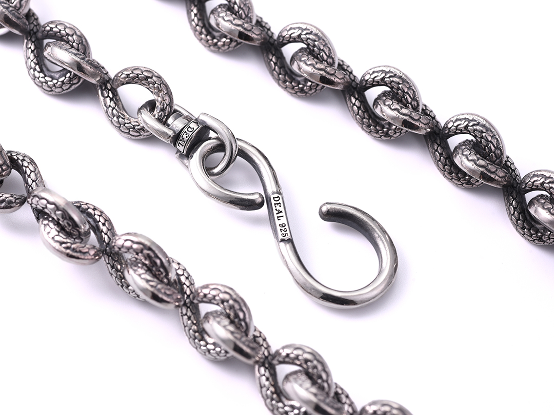 全てのコマにリアルなスネークのディテールが刻み込まれた重厚感あふれるウォレットチェーン。